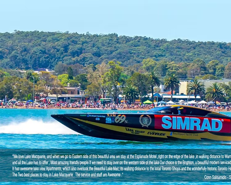 For Superboats Lake Macquarie Accommodation, The Esplanade Motel Warners Bay is the place to stay! You can see the action on the forshore right in front of your motel accomodation. Or take a short lakeside stroll to Warners Bay eateries and public jetty for more great viewing options.